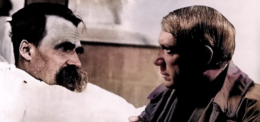 لم يبدأ نيتشة مسيرته الأكاديمية كفيلسوفا أو اديبا، بل كلغوي كلاسيكي، لم يصبح نيتشة فيلسوفا إلا في اللحظة التي تأكد فيها أن علاقتنا مع العالم عاطفية، و أن موهبة الإنسان الحقيقية هي الضحك، لقد صعد نجم نيتشة بعد كتابه ولادة المأساة وقد أثار الكتاب الكثير من الجدل، أما مولد التراجيديا فقد تم الهجوم عليه من قبل العالم الأكاديمي لأنه كتاب يفتقر للجدية فمن وجهة نظرهم كان مولد التراجيديا مجرد قصيدة فيها الكثير من الحماس و الضحك، هل كنا محظوظين بنسيان نيتشة لفقه اللغة؟ كارلوس كاساجيماس صديق بيكاسو قال: “الملهم في كل لوحات الفترة الزرقاء هم المتسولين و العاهرات الذين كان بيكاسو ينظر إليهم و هو يتجول في شوارع برشلونة، فهل نحن محظوظين بنظرات بيكاسو الطويلة للعاهرات؟ بيكاسو صرخة ملونة، سكين أزرق في صدر الهم الإنساني، نيتشة بكى بسبب المفارقة العجيبة وهي أننا في اللحظة التي أصبحنا إنسانيين جدا دمرنا العالم، لحظة مضحكة لدرجة البكاء، بيكاسو بكى من إنحناء الإنسان تحت حمل الفقر الكبير، كان سكين الأزرق يجرح موهبته كي تتكلم،في بداية عام 1935م ترك بيكاسو الرسم ليكتب الشعر،بيكاسو يكتب كعاشق ممزق في لوحات كثيرة، لقد كانت الكتابة محولة للإستيقاظ من حلم مرعب، محولة لإيجاد نهاية لليل التاريخ الطويل، الكتابة و الرسم هما الوسيلة الأجمل للتعاطف مع النفس،مع الآخر، مع العالم، هما أكبر تجربة عرفتها اليد عبر تاريخها، هما الاستعارة الأكثر حميمية في تاريخ البشرية، الكتابة و الرسم هما مسك اليد ليد الآخر البعيد بحنان مفرط في حرارته، إن اللمس هو محاولة للدفاع عن النفس ضد العجز الرمادي، ضد قضم اليأس يد الأمل، لدينا أرشيف كبير مكوّن من الكتب و اللوحات للدفاع عتا ضد أن يكون هناك شرطا للحياة و مع ذلك يكون غائبا.